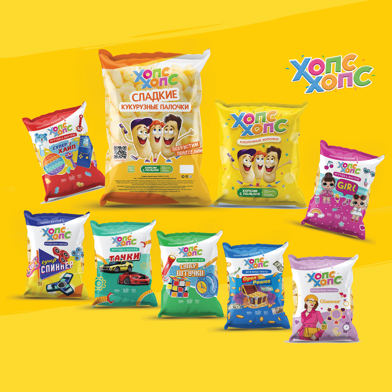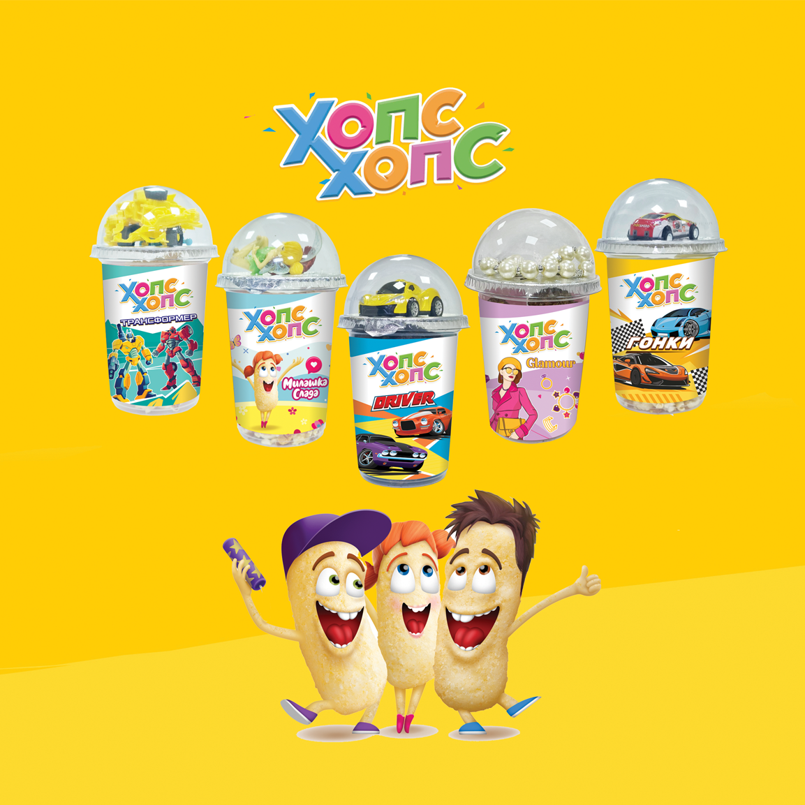 Хопс-Хопс молодая, активно развивающаяся компания на рынке снеков, специализурующаяся на производстве кукурузных палочек и попкорна.Продукция производится из высококачественного, экологически чистого сырья на современном оборудовании. Строгое соблюдение технологических процессов и контроль качества полностью исключают применение каких-либо вредных, опасных для здоровья добавок. Наша продукция отвечает государственным стандартам и требованиям, и разрешена для детского питания с 3-х лет.Отличительной особенностью нашей линейки продуктов является линейка товаров с сюрпризом-игрушкой, вкладываемой в упаковку с лакомством. Благодоря собственным разработкам, продукция с сюрпризом быстро завоевала сердца потребителей, а также способствовала узнаваемости торговой марки. Ассортимент продукции многообразен, известен во многих регионах России.